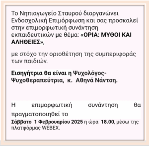 - «Όρια: Μύθοι και αλήθειες» με το Νηπιαγωγείο Σταυρού Ημαθίας (1/2/2025)